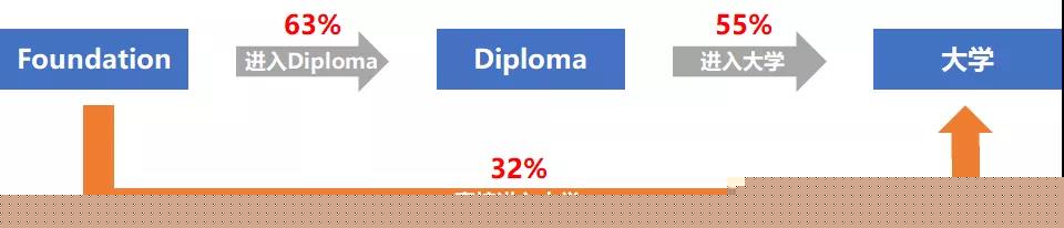 數(shù)據(jù)顯示,預(yù)科畢業(yè)后60%的學(xué)生可以進(jìn)入到Diploma大一快捷課程,30%可以直接進(jìn)入大學(xué)入讀,還有10%無法完成預(yù)科學(xué)業(yè),這么算下來,預(yù)科正式進(jìn)入大學(xué)的概率只有66%(0.63*0.55+0.32≈0.66),而這還是包含了轉(zhuǎn)專業(yè),轉(zhuǎn)院校的情況。