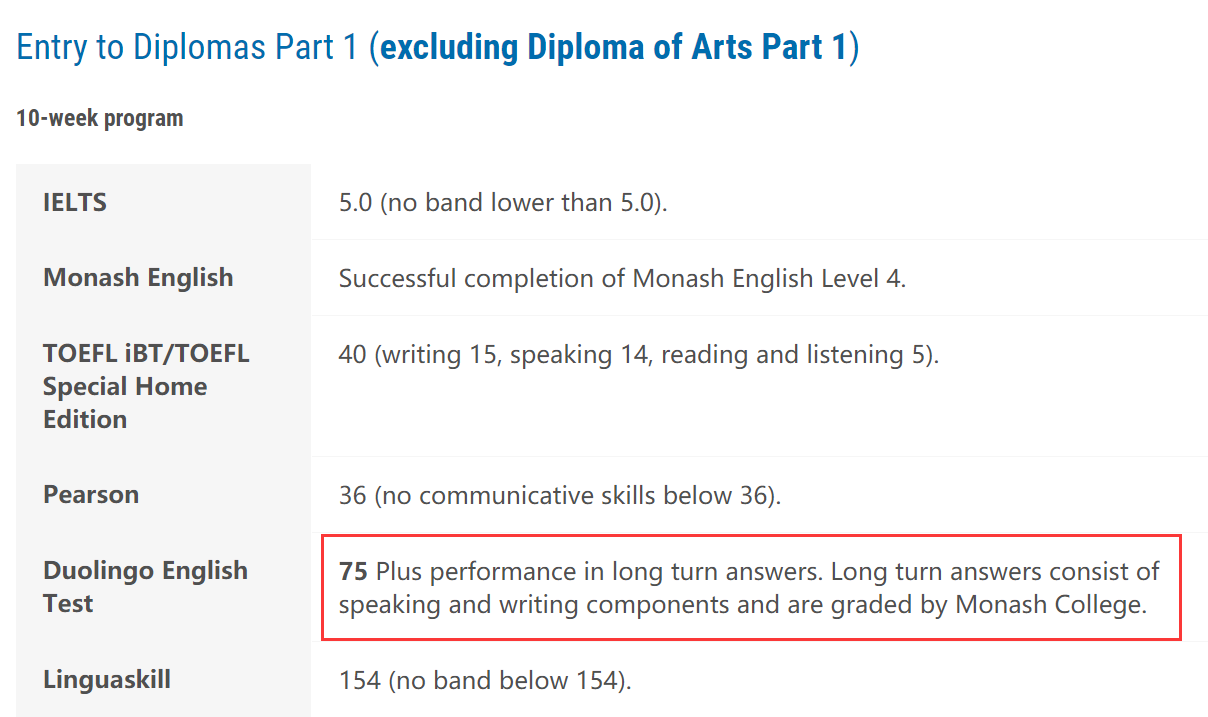 官方網站鏈接:http://monash.edu/admissions/english-language-requirements
