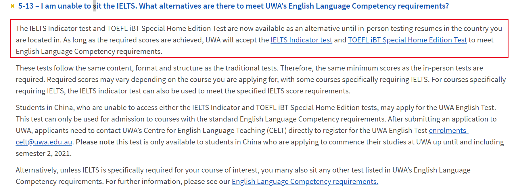 2021年開課的本科及碩士項目,仍舊臨時認可TOEFL home edition、IELTS indicator成績。