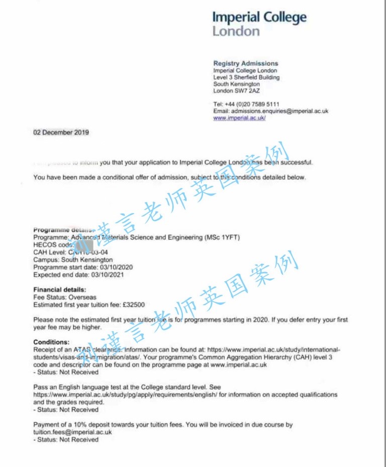 帝國理工錄取案例:高級材料科學(xué)與工程碩士,無雅思提前錄取