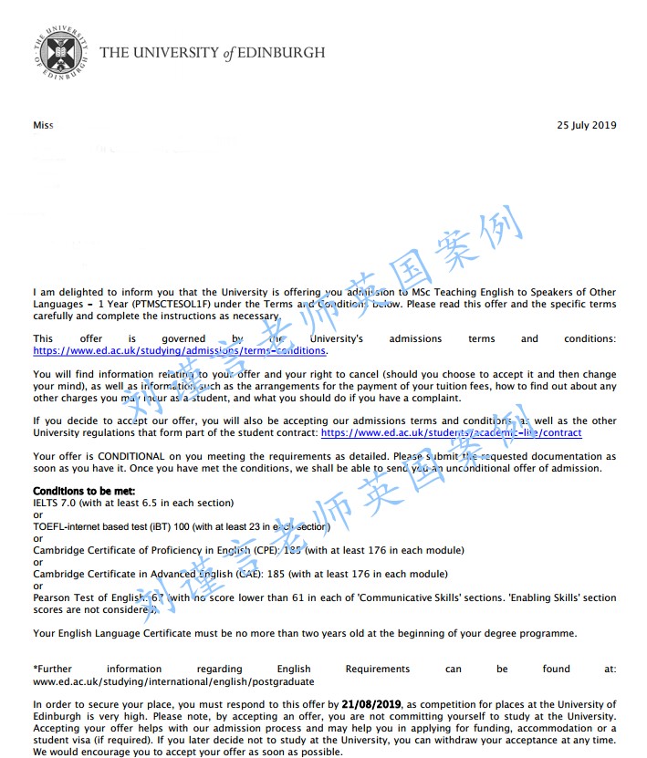 愛丁堡大學(xué)錄取案例:對外英語教育碩士