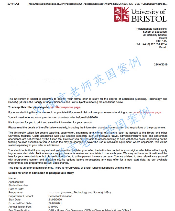 布里斯托大學(xué)錄取案例:教育學(xué)碩士