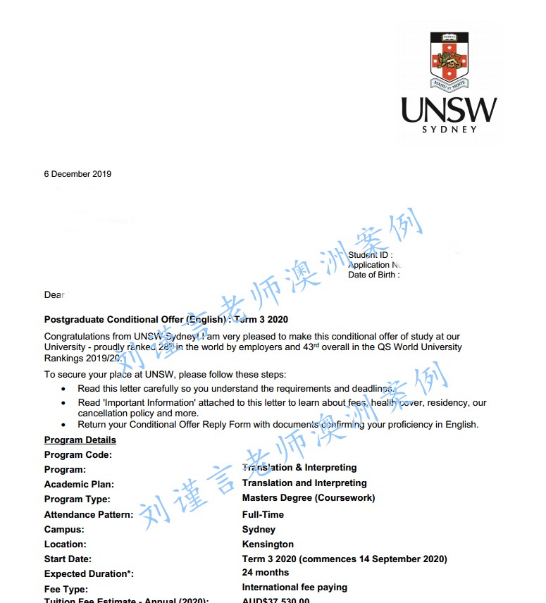 新南威爾士大學(xué)錄取案例:筆譯與口譯碩士