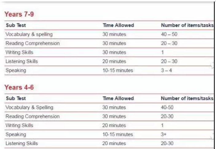 包括詞匯、閱讀理解、寫作、聽力以及口語,形式則多種多樣,單選、多選、句子填空、詞語配對、圖表等等一系列的考試形式,相較于中國比較刻板、死記硬背的傳統考試方式來說更全面的考察了孩子們應該具備的英語素養和舉一反三的能力。
