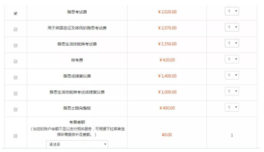 雅思考試費 (含稅金額):2,020元人民幣