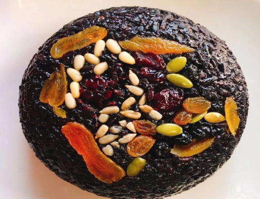 在M同學(xué)指導(dǎo)下,我還DIY了八寶飯。八寶飯的豬油是M自己熬的,里面的豆沙也是M做的,糯米飯是M煮的,湊滿8樣的果仁是超市買的,我負責(zé)擺了個盤。也很有成就感哇。