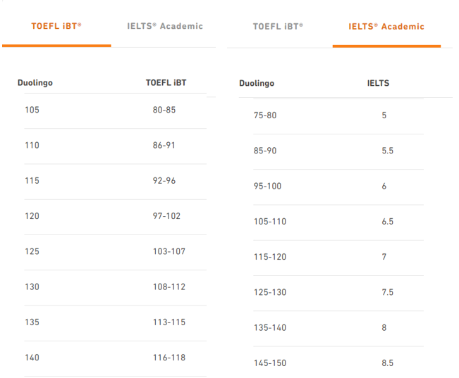 多鄰國英語考試與托福和雅思成績的換算截圖,供大家參考下難易度: