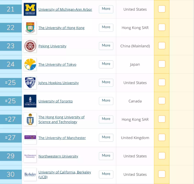 以上就是小編給大家分享的更多關于2021QS世界大學綜合排名的相關內容,如有其它問題可以點擊頁面的咨詢框,會有專業的老師為你免費解答。或者持續關注http://m.4466wwmy.cn/