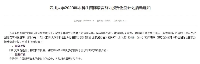 我們注意到許多國內高校為了幫助大家提升英語水平,激發學習熱情也是操碎了心,一些學校專門設立了有關語言能力的專項獎學金獎勵計劃。