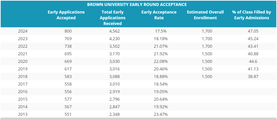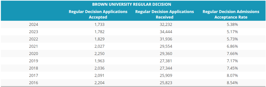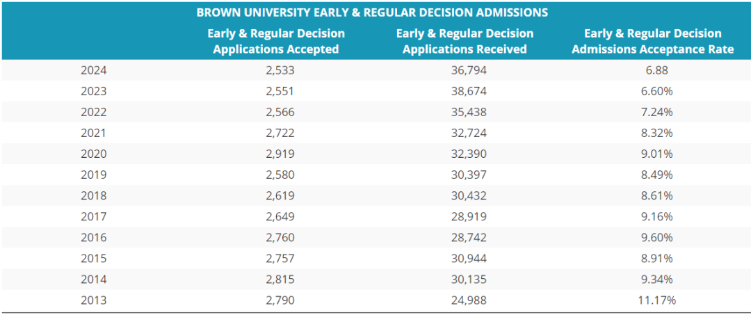 布朗的早申錄取率還行,但從2020屆開始就連年下滑,估計今年還會降一波。