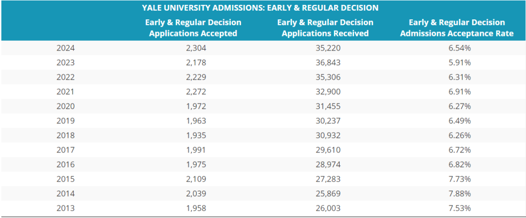 在2012年之前,耶魯的早申錄取率還是挺高的。但從13年之后,錄取率大幅下降,從35%降到了如今的13.8%。