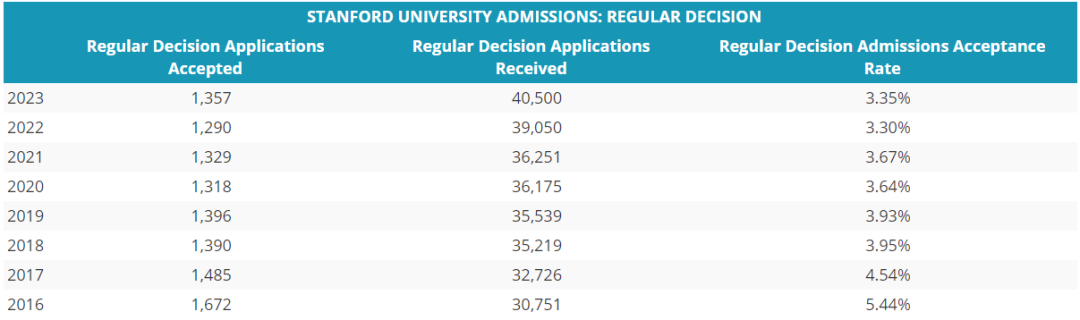 斯坦福的RD錄取率也是低的可憐,跟哈佛有的一比,近幾年的RD錄取率基本都在5%以下。