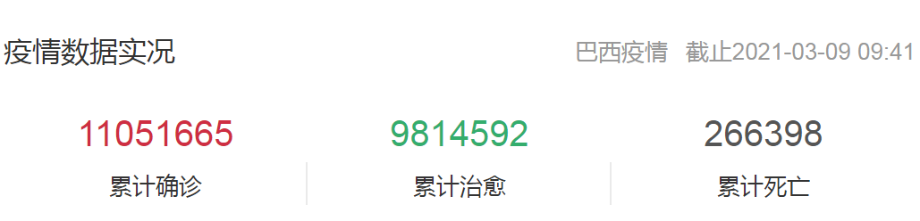 過去一周,南美洲、中東及北非地區和歐洲疫情反彈;巴西疫情出現大幅反彈。3月7日,巴西單日新增80508例新冠確診病例,是該國自1月7日以來日新增感染數最高的一天。巴西重癥監護病房接近或滿負荷運轉,三分之一處于崩潰邊緣。