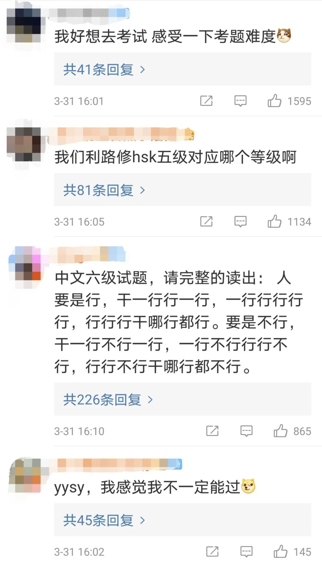 此前,曾風靡網絡的“中文十級測試題”也再次引發網友歡樂討論。網友們紛紛盤點中文中有趣的“梗”。