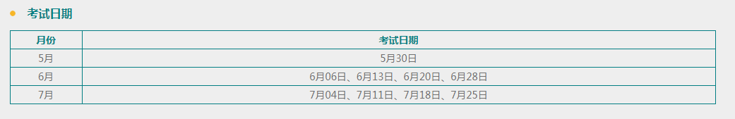 考試日前7天截止報名。比如,5月30日考試的報名截止日期是5月23日。
