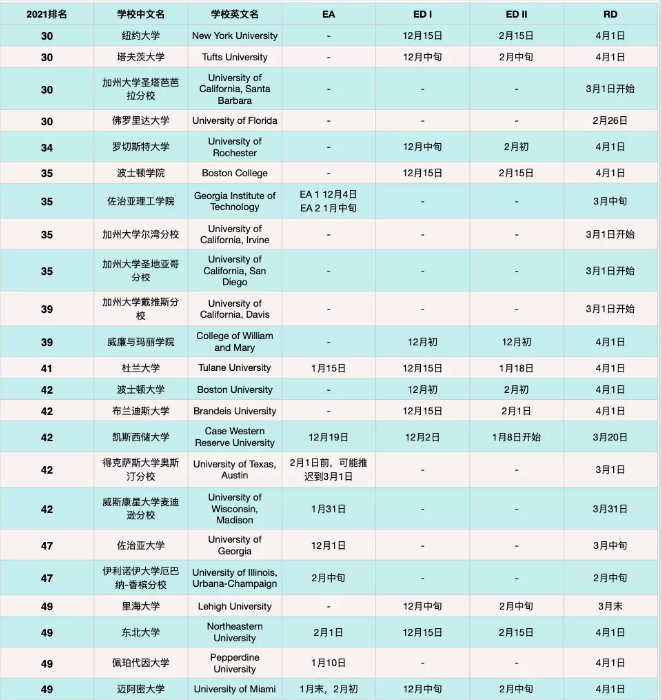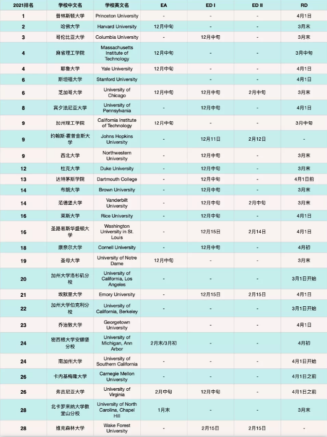 下個月,大部分美國高校的ED申請結果也將放榜。2021申請季,EA錄取結果發放時間集中在12月中旬,ED錄取結果發放集中在2月中旬。